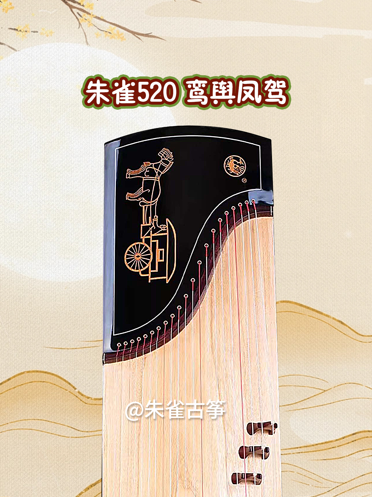 说到初学筝,不得不提的就是我们朱雀经典的款式520,了解过朱雀古筝的筝友,对这款古筝应该并不陌生,图案是经典的车马图-鸾舆凤驾,音色清新明亮,对于初学者来说是一款不错的选择型号。